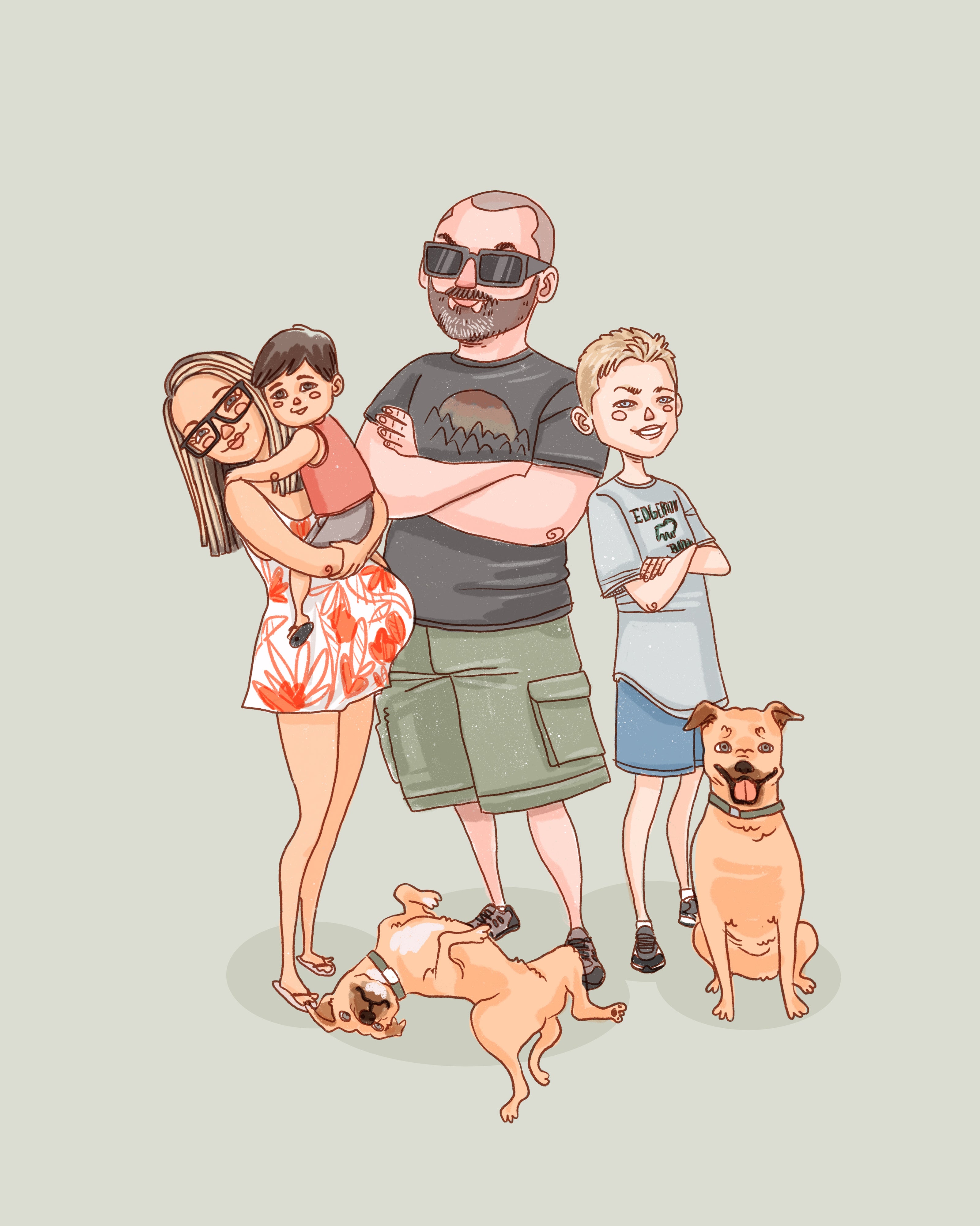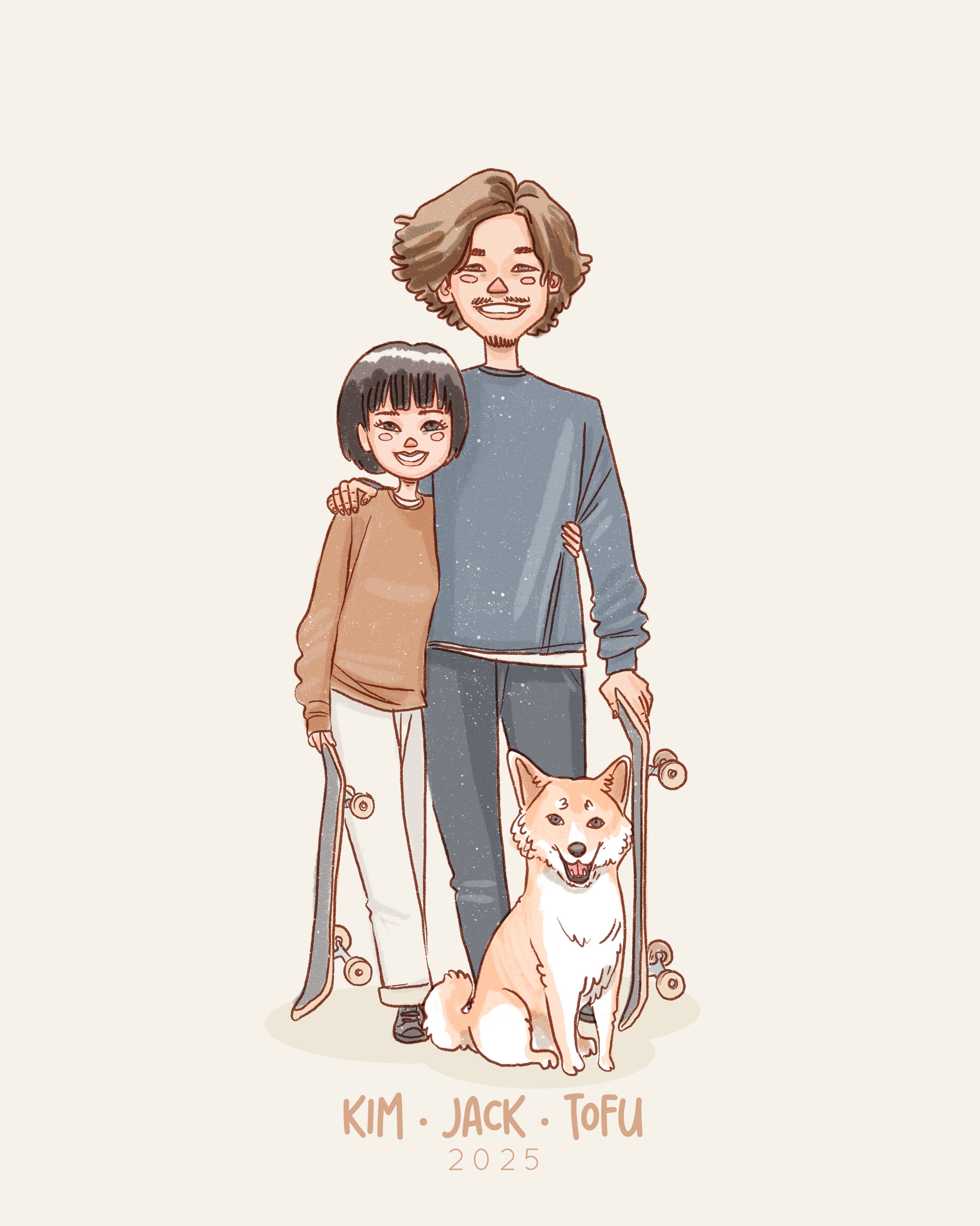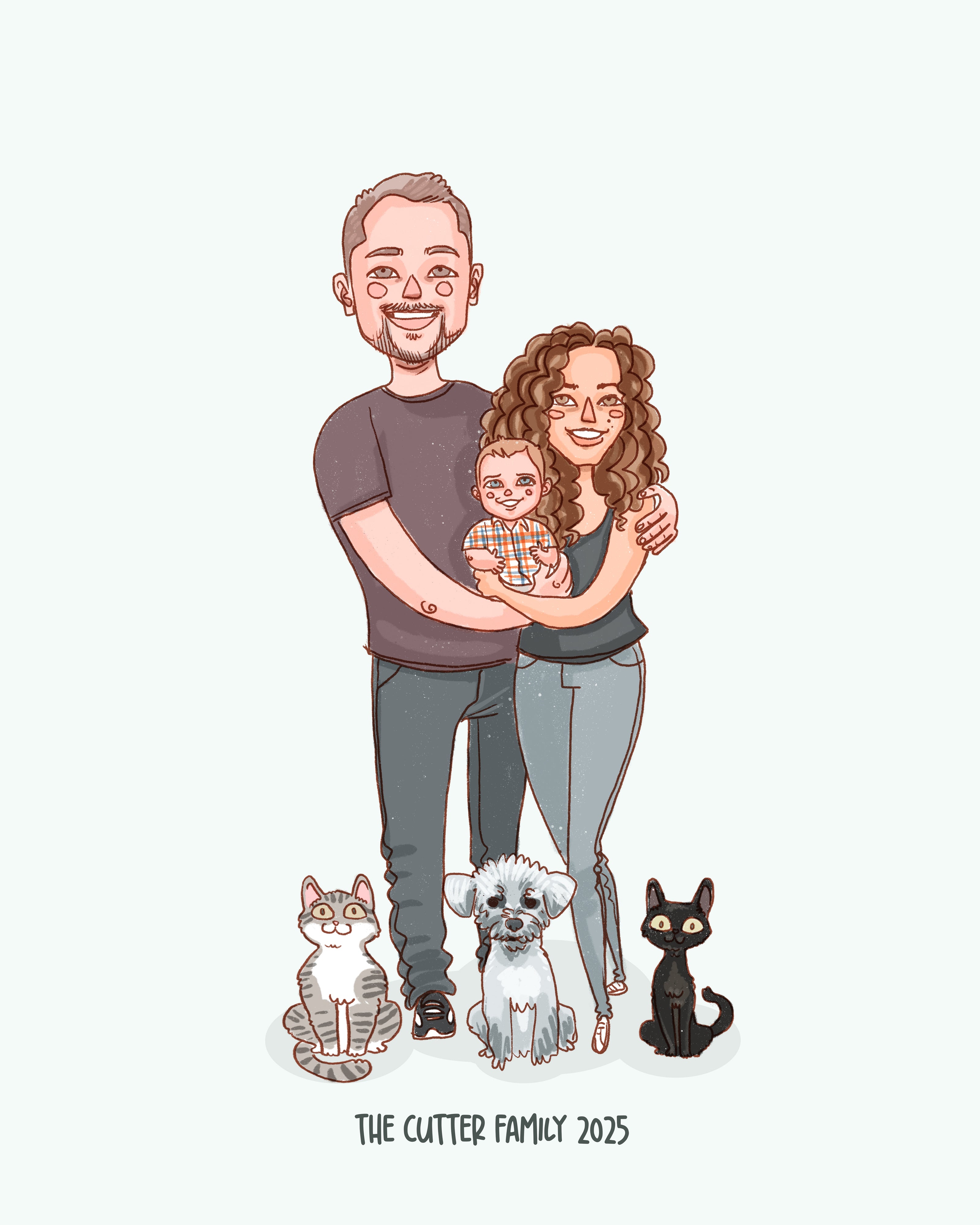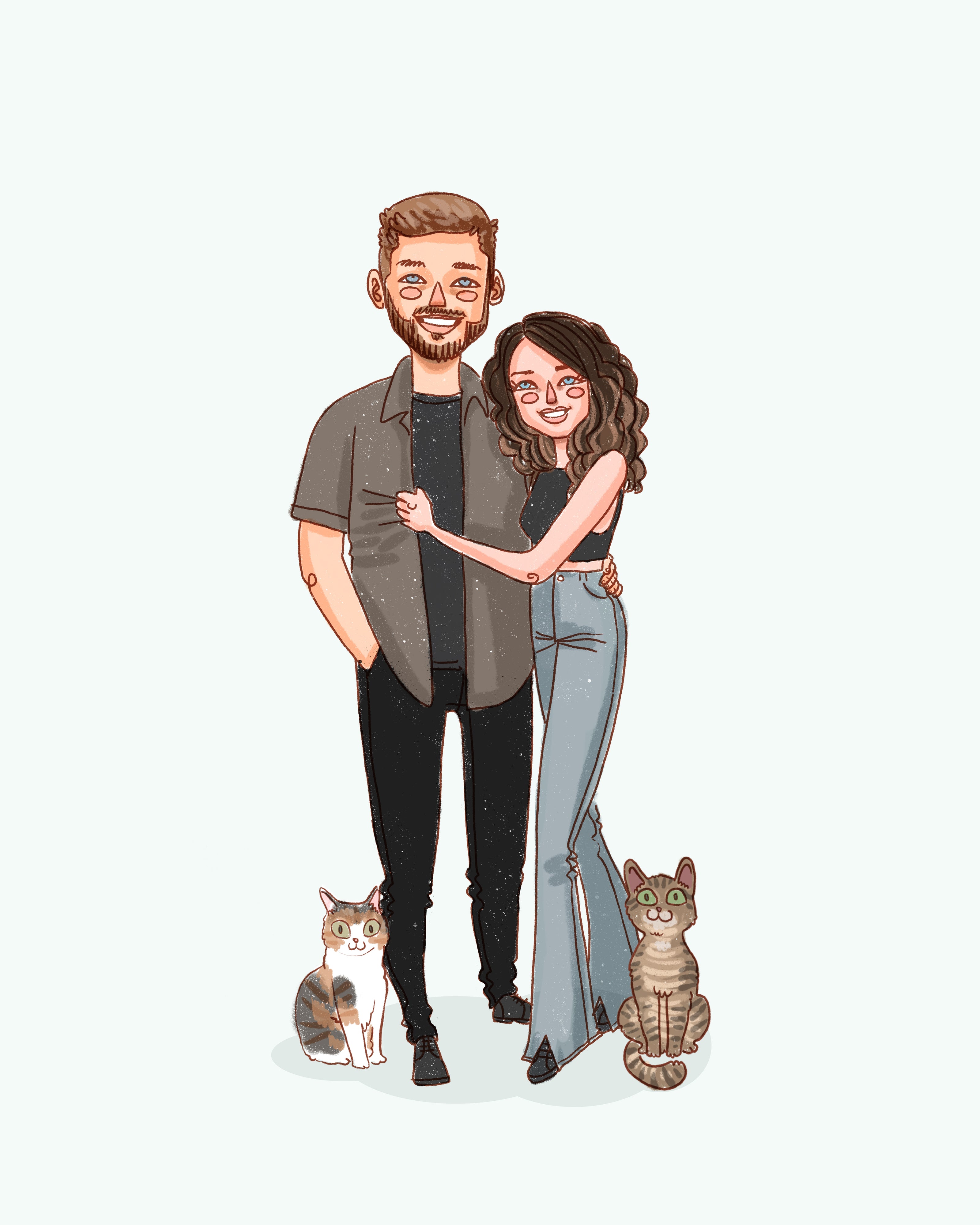I draw every portrait by hand, just for you, and you can customize it as much as you want. Let’s make something special together!