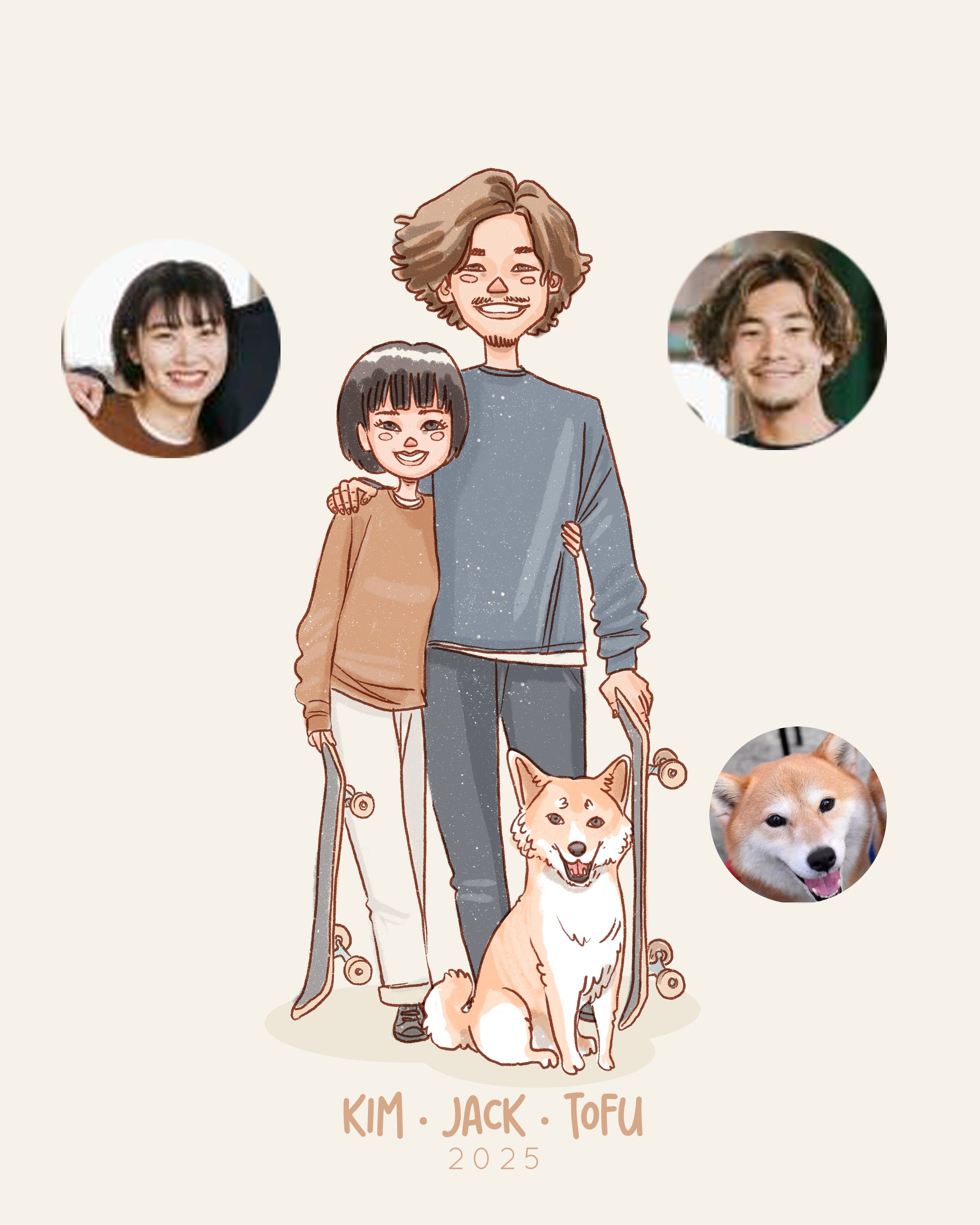 No worries if you don’t have a group picture — feel free to send separate photos of each person. I’ll make sure everyone appears together in the final drawing :)