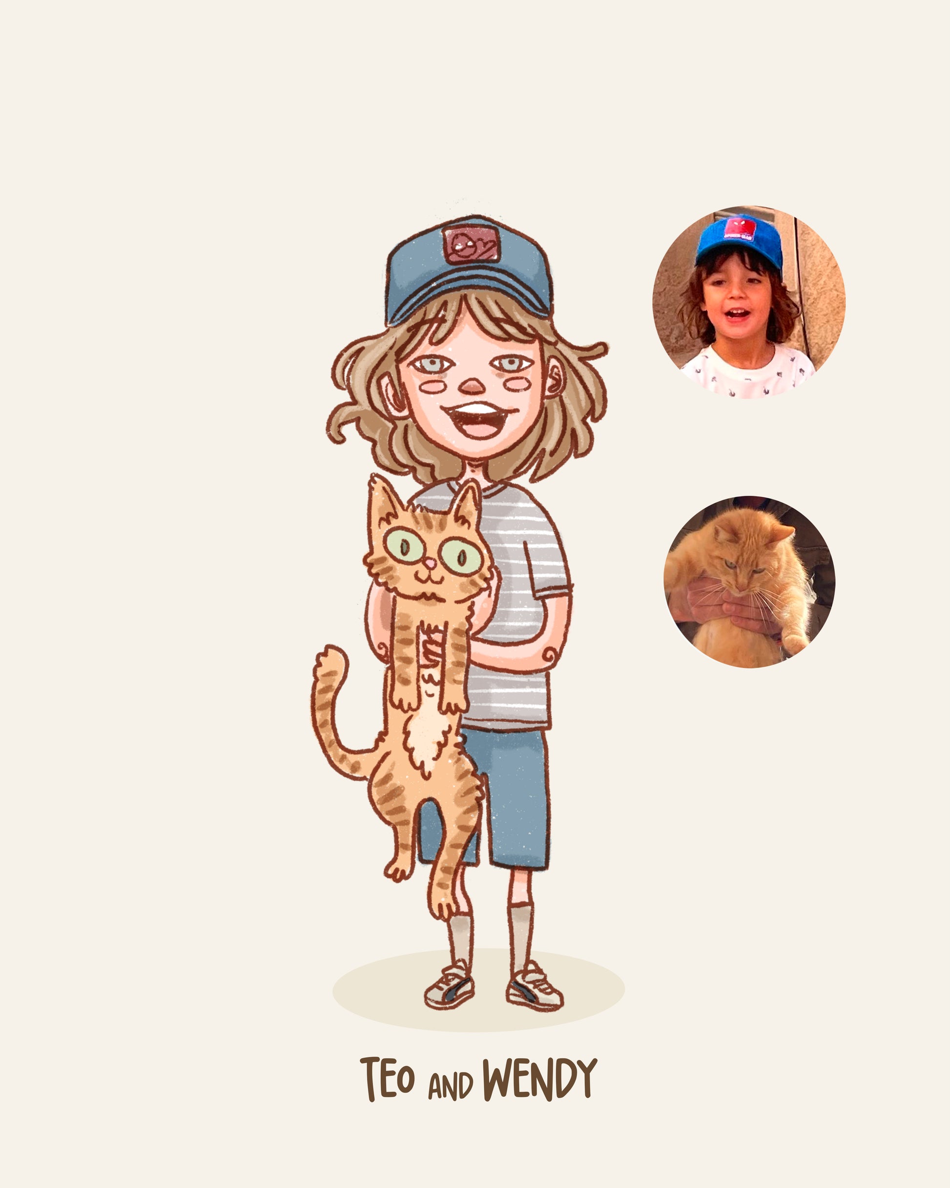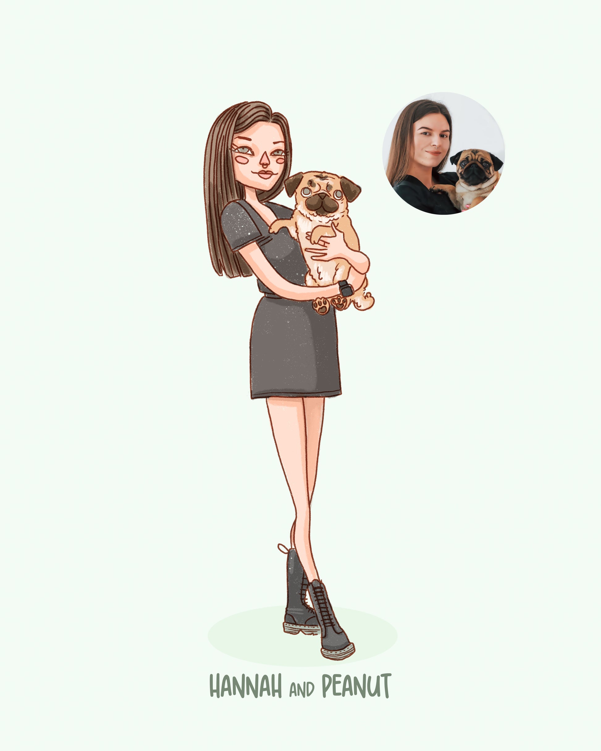 A custom hand-drawn portrait made just for you. Simple and cute, but very detailed. You can ask for a specific clothing and hairstyle and add your pets or special details.